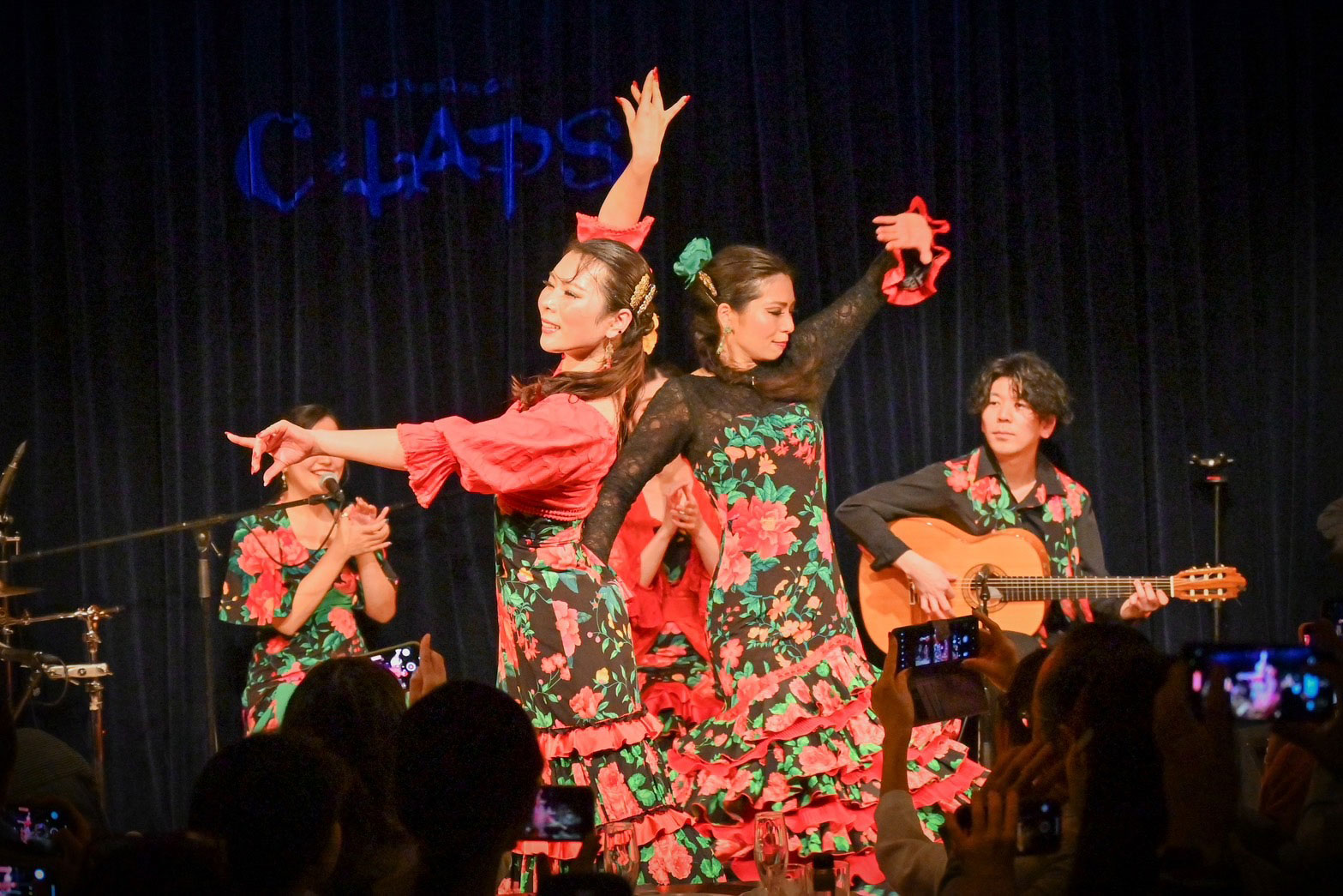 私とフィエスタの関わりとしては、立ち上げくらいからで実は結構長いです。それこそ、フィエスタで出会った有名画家の堀越千秋さんに、私はスペイン留学を後押ししてもらったんです。帰国してからしばらくフラメンコやそれ以外のお仕事も含めてプロとして活動していましたが、「ロストポス(Los Topos)」というフラメンコチームを結成し、演者としてフィエスタの舞台に上ったのは3年ほど前からです。ロストポスというのは“モグラたち”という意味を持っています。フラメンコって普段あまり開かれた場所ではなく、洞窟のような場所(タブラオ)でやることが多いのですが、なんだかそれがモグラみたいだよねって(笑)なので、私達は地上に出ていこうぜ!みたいな意味も込めてこの名前にしています。あとは、フラメンコって時代背景もあって重たく暗めの曲が多いのですが、観客の皆さんには笑顔で楽しくなってほしいと思っています。なので、明るめの曲やアレンジをメインにしながらも本場のフラメンコのように重厚感のあるステージを作ることで、初めて見る方にもフラメンコを馴染みやすいものにできるよう、工夫しています。